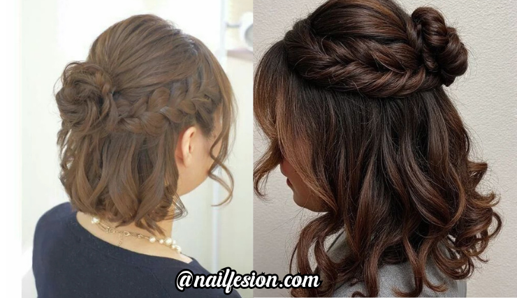 This trend combines one side braid pulling into the half up section with soft waves cascading down. It’s effortlessly romantic and great with textured short hair. Works beautifully with off‑shoulder dresses and outdoor photos.