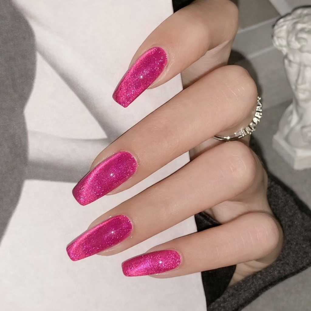 Baby pink chrome nails look clean and polished on all nail lengths. Short nails give a neat, everyday look, while longer nails feel more glamorous. Gel and acrylic nails hold chrome powder best, but press-on nails also work well. For round or square nails, keep the chrome layer thin for a smooth finish.