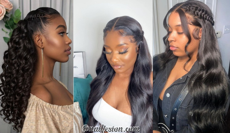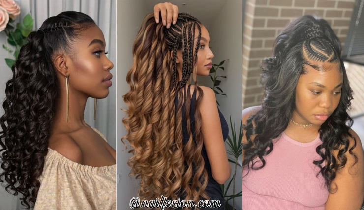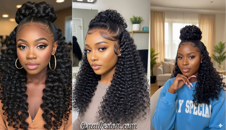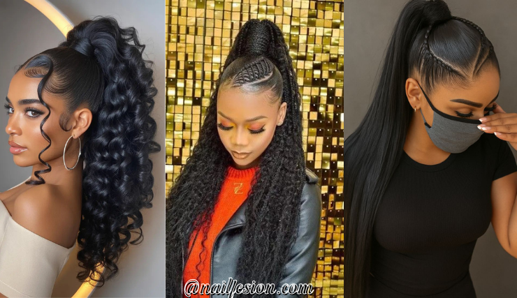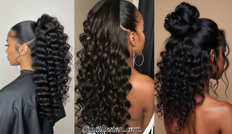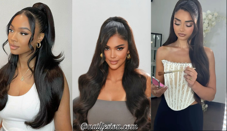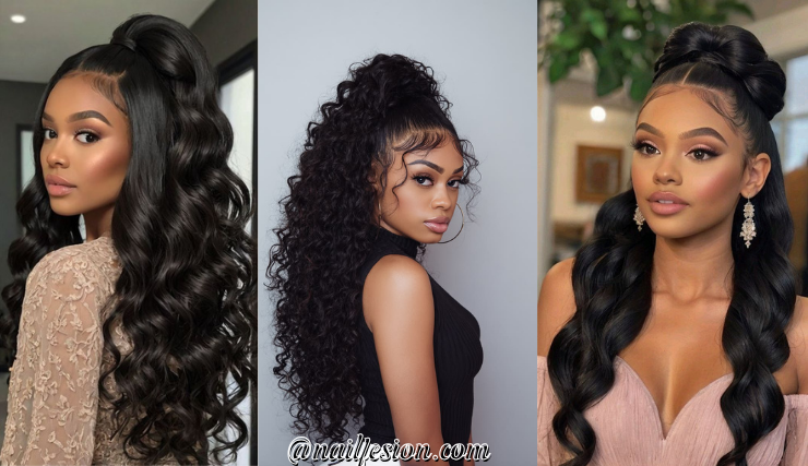 This style features a high ponytail on top with flowing hair at the bottom. It’s trendy, sporty, and super versatile. You can wear it to the gym, school, or even a night out. This look is popular on Pinterest because it gives a lifted and youthful vibe. You can curl the bottom for extra bounce or keep it straight for a sleek finish. It works with weaves, natural hair, or extensions. If you want a hairstyle that feels energetic and stylish at the same time, this one is perfect.