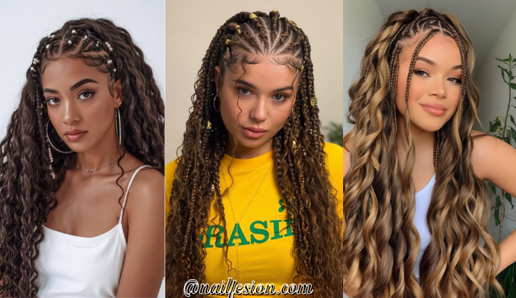 This hairstyle is perfect if you love showing off your natural curls. The top section is pulled into a soft crown, while the rest of your curls flow freely. You can wear this look to school, brunch, or even a party. It works best with medium to long natural hair and adds volume instantly. Pinterest users love this because it looks effortless yet polished. You can also add gold clips or beads for extra style. If you want something that feels both natural and elegant, this curly crown look is a must-try for everyday beauty and special occasions.