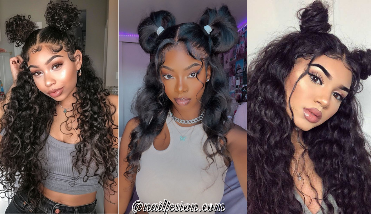 Half Up Space Buns Half Up Half Down Hairstyles Black Women