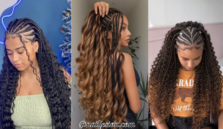 This trendy look features neat braids styled into a top knot while the rest of your hair flows down. It’s perfect for when you want something protective yet stylish. You can wear it for casual days or even events. This hairstyle works great with box braids or cornrows and suits all face shapes. Pinterest trends show this look is super popular because it mixes structure with freedom. You can also wrap the knot with gold thread for a bold vibe. It’s a great way to keep hair out of your face while still showing length.