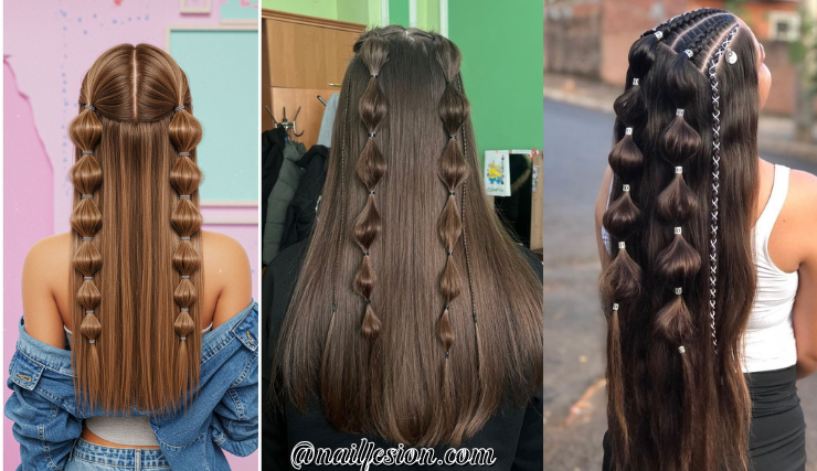 Bubble Pony Half Up Half Down Hairstyles for Long Hairs