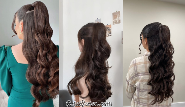 This high pony version gives a bold and confident vibe. In this half up half down hairstyles for long hairs look, tum tie the top section into a high pony while leaving the rest down. It adds instant volume and makes your hair look fuller and longer. This hairstyle is perfect for parties, gym looks, or trendy street style. It’s trending because it gives that lifted, snatched look everyone loves right now. Pair it with sleek edges or soft curls below. It’s a great mix of sporty and glam, making it super versatile for different occasions.