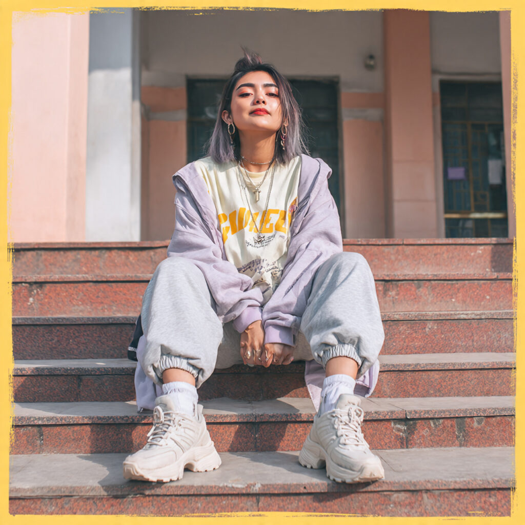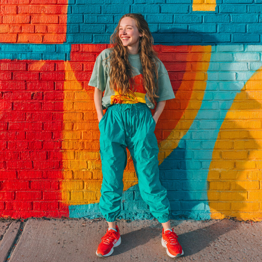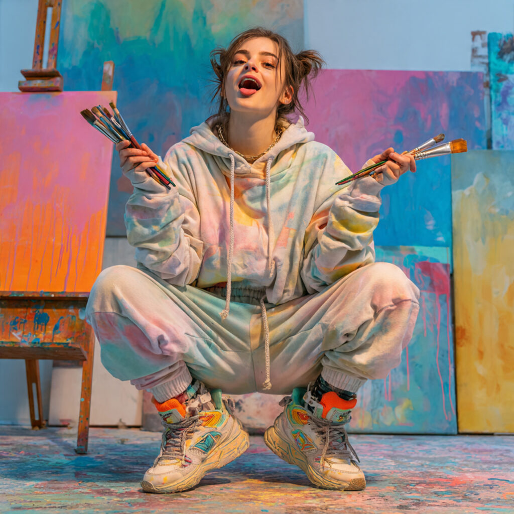 Add artsy energy to your outfit with a graphic hoodie and tie‑dye sweatpants. This vibrant, Pinterest‑worthy look feels playful and creative, perfect for art class or weekend vibes. Pair with fun sneakers and colorful accessories to boost the aesthetic. Trend boards love this expressive style because it’s bold, fun, and totally unique.