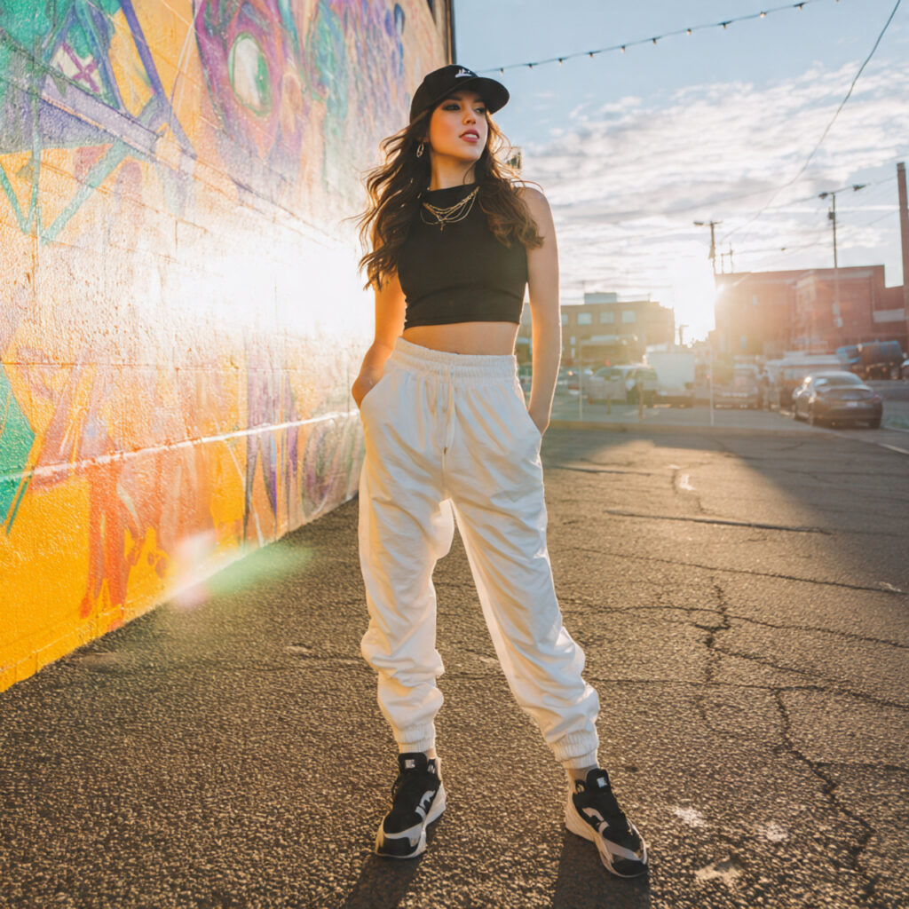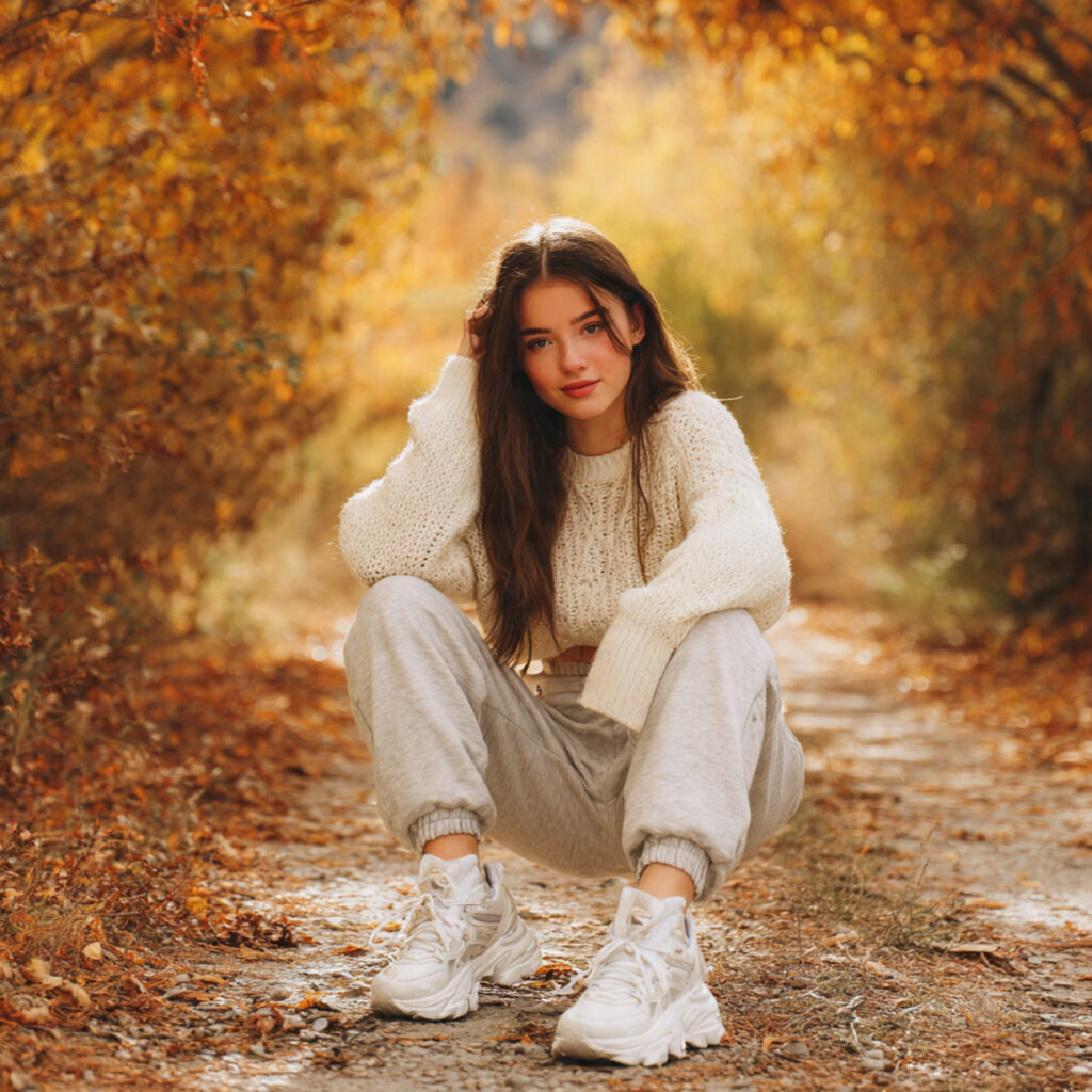 For an athletic vibe, pair a sleek zip‑up jacket with fitted sweatpants and running shoes. Perfect for days with PE or club practice after school, this outfit blends performance with style. Pinterest boards are filled with this look because it’s functional, flattering, and easy to customize with accessories like headbands, watches, and colorful socks to express personality.