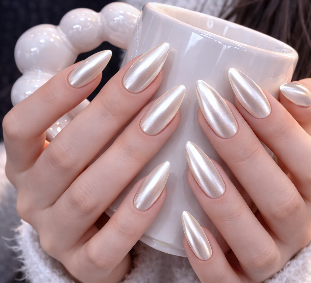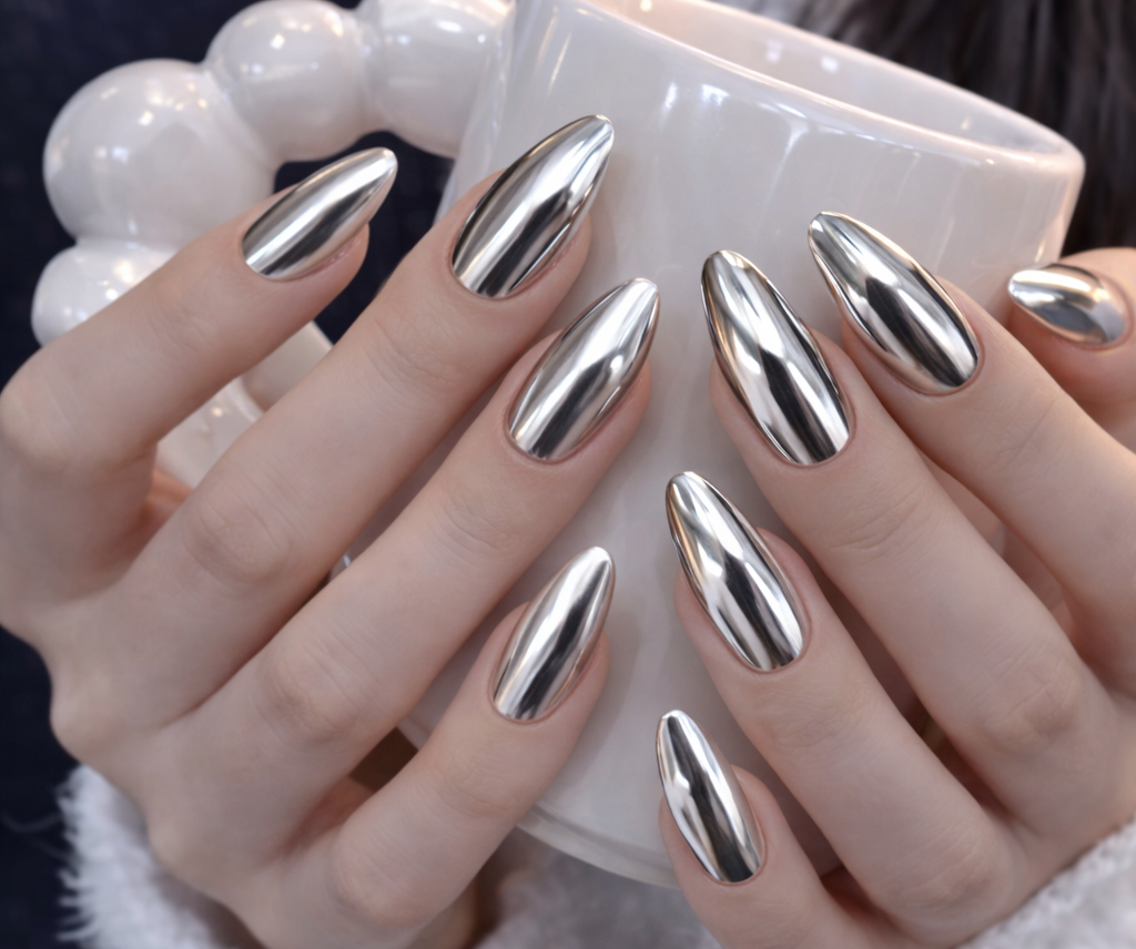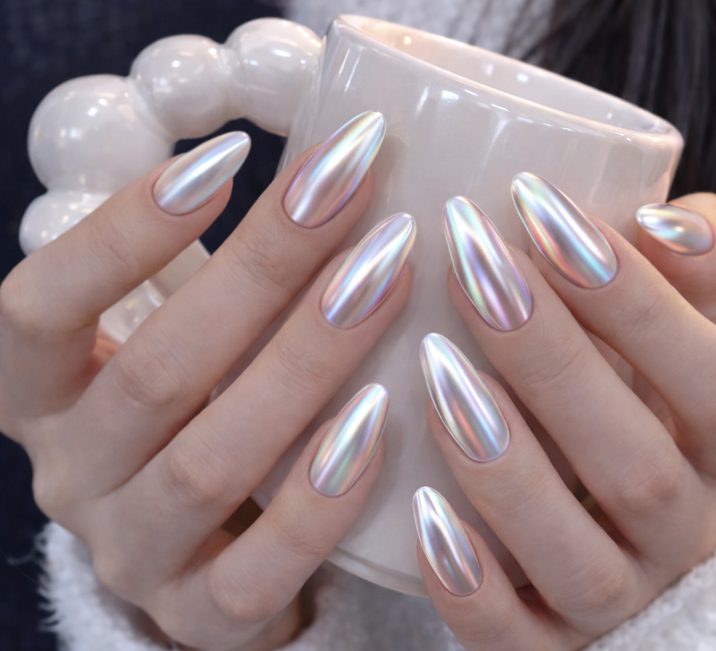 White chrome nails offer a classy, modern look that’s surprisingly easy to achieve. Perfect for beginners or nail enthusiasts, they work on various nail types and lengths. With a mirror-like shine, this style adds instant elegance and confidence to your hands—perfect for daily wear or special occasions.